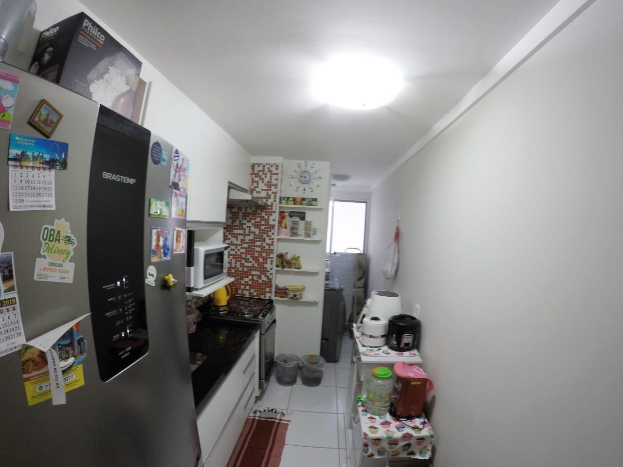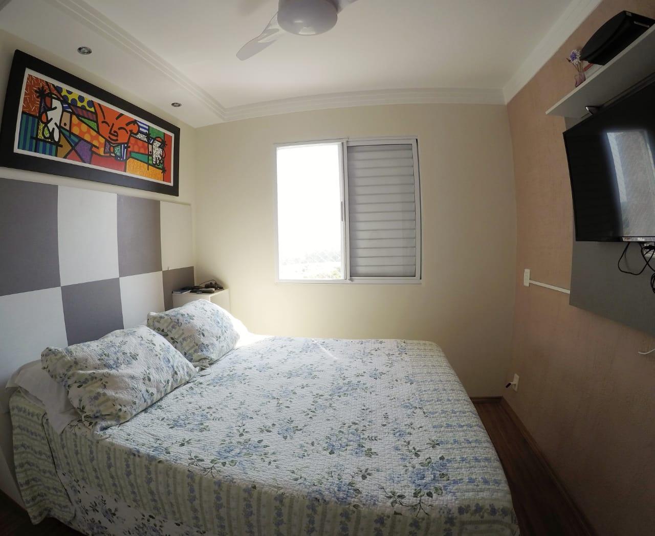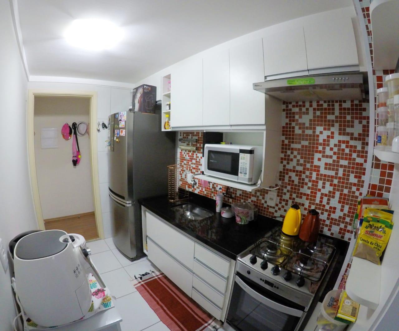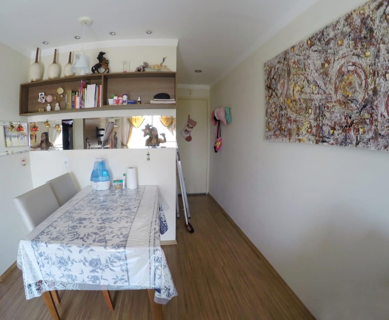 - Descrição: Descrição Apartamento no 6º andar com 2 dormitórios, sala 2 ambientes com ar condicionado e sacada, cozinha com modulados, garagem coberta para 1 carro, ventilador de teto e proteção nas janelas.