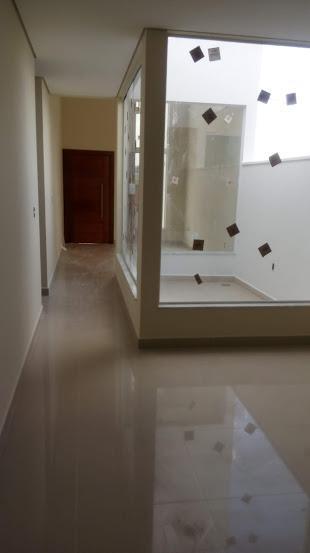 - Descrição: Casa nova com 3 dormitórios, sendo 1 suíte, sala 2 ambientes, cozinha, área de serviço, banheiro social, banheiro externo, quintal, quarto de despejo, garagem pra 4 carros sendo 2 vagas cobertas. Tomadas 110 W. e 220 W para aquecedor e tomada para ar condicionado. Loteamento fechado com infraestrutura completa, são mais de 74.000 m² de área, incluindo lago, pista de caminhada, mata preservada, piscinas adulto e infantil, quiosques com churrasqueira, salão de jogos, salão de festas, campo de futebol, quadra de areia, playground, portaria 24 horas.
