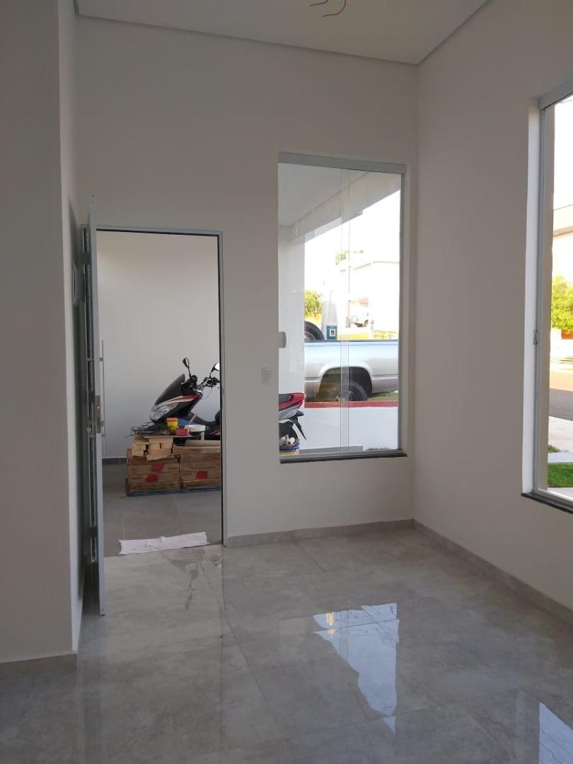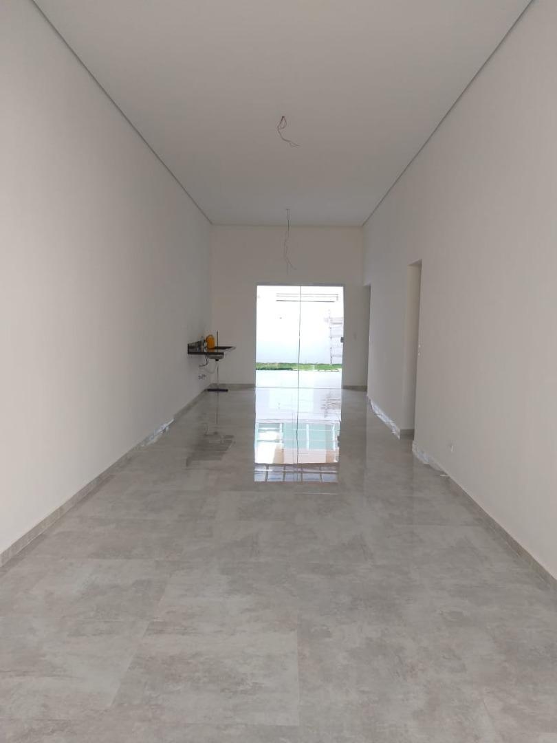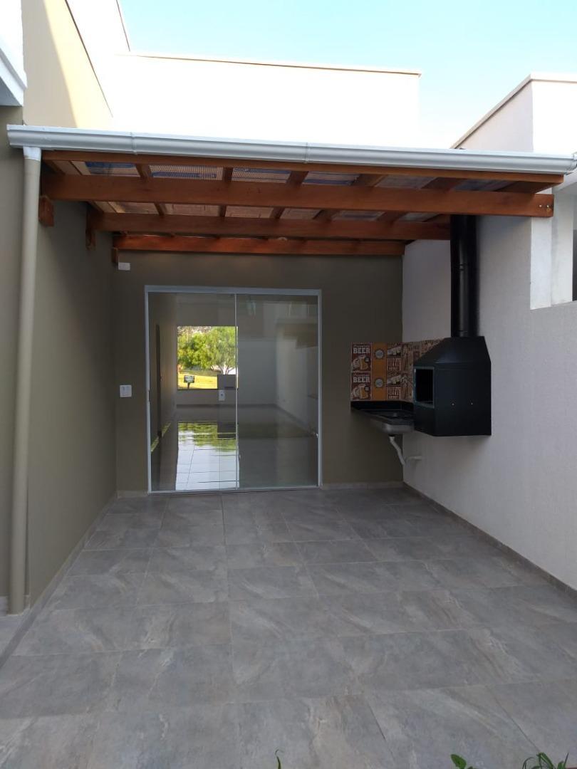 - Descrição: Casa em construção com obra prevista para finalizar em 2 meses contém: 3 dormitórios sendo 1 suíte, sala 2 ambientes, cozinha, área de serviço, quintal, espaço gourmet, garagem para 2 carros sendo 1 coberta. Loteamento fechado com infraestrutura completa, incluindo lago, pista de caminhada, mata preservada, piscinas adulto e infantil, quiosques com churrasqueira, salão de jogos, salão de festas, campo de futebol, quadra de areia, playground, portaria 24 horas, monitoramento com câmeras, ronda, lago para pesca.