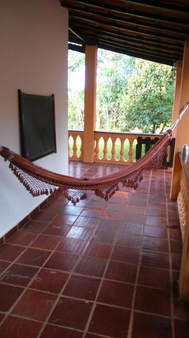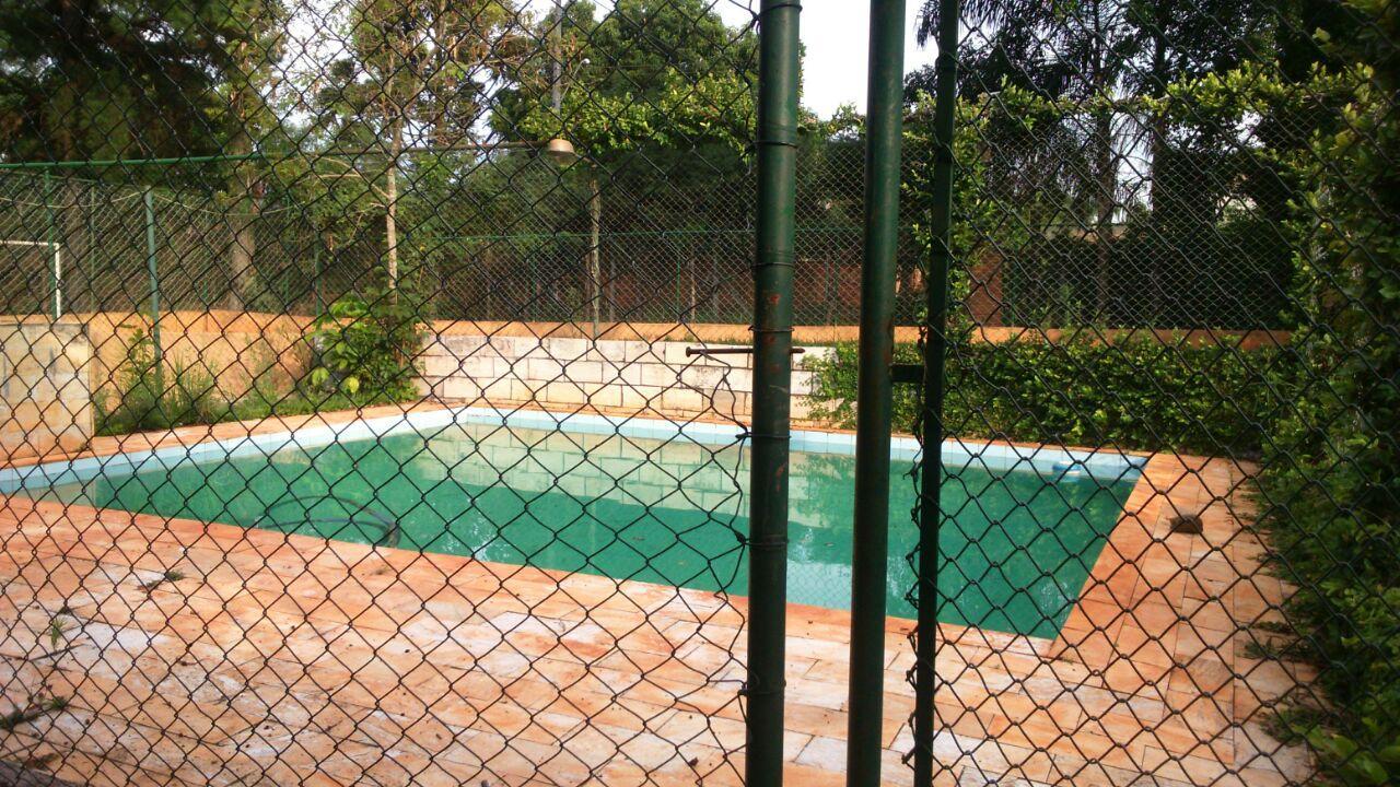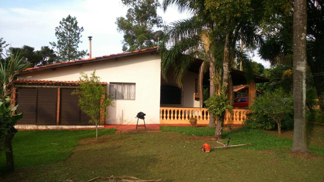 - Descrição: Chácara com 5000 m², próximo a igreja; padaria; mercado; entre outros. São 3 dormitórios; despensa; sala 2 ambientes; cozinha; fogão/forno à lenha; churrasqueira; casa de caseiro com 2 dormitórios e banheiro/avarandada/área de serviço; piscina; poço com água mineral; campo de futebol; ponto comercial (salão 120 metros + mesanino com 30 metros) Casa principal com estrutura para sobrado; árvores frutíferas; horta; armários para depósitos de mesas e cadeiras; salão depósito com 30 metros; quarto para guardar ferramentas; sistema de segurança com câmeras, sensores de presença e alarmes. TV a cabo.
