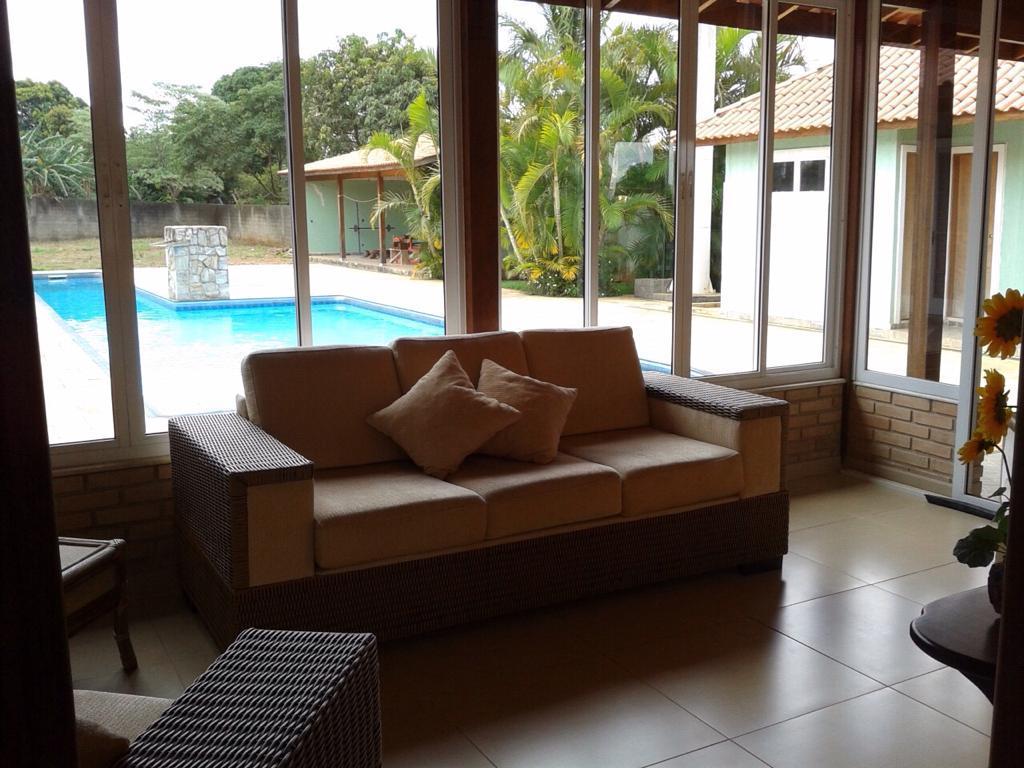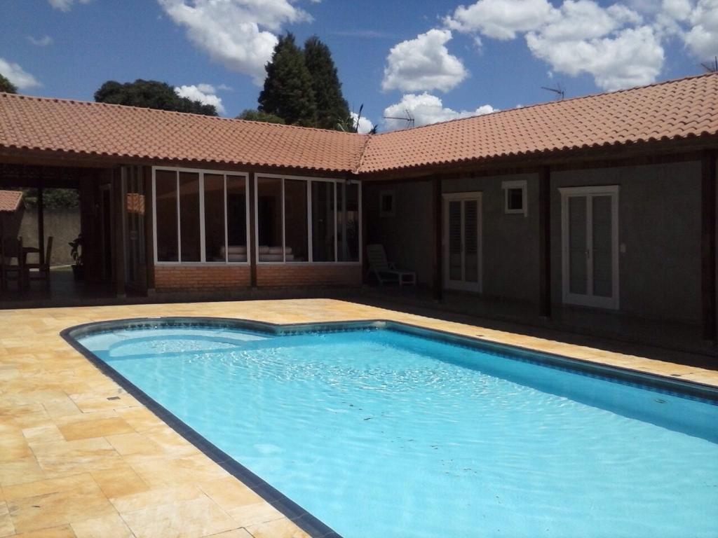 - Descrição: Excelente chácara com 4 suítes (sendo 1 master com closet 16 m2 e banheiro 16 m² com hidromassagem). Sala 2 ambientes; lavabo; cozinha americana; sala íntima; móveis modulados Todeschine; água com aquecimento solar nos banheiros e cozinha. Parte externa: churrasqueira com área coberta de 100 m²; forno de pizza; forno de pão; fogão à lenha; 2 vestiários; 1 lavanderia; piscina 5x10m com uma raia de 20m; garagem coberta para 4 veículos; terreno nos fundos de aproximadamente 900 m². Chácara inteira murada, próxima de padaria; mercado; açougue; farmácia; pizzaria. Aceita permuta por casa/apto até 600 mil ou carro como parte do pagamento.
