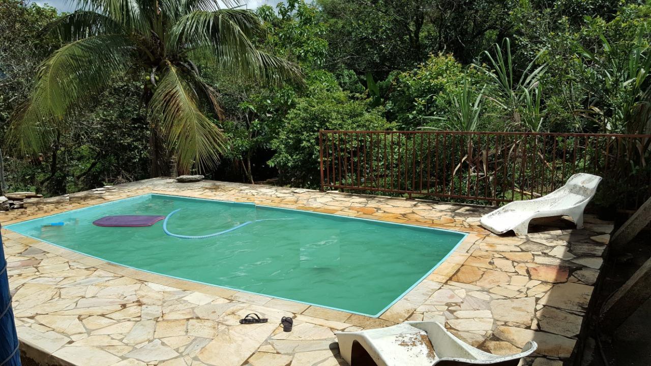 - Descrição: Chácara com 4 dormitórios, sendo uma suíte; 1 banheiro; sala dois ambientes; escritório; garagem para 3 carros; hall; varanda; lavanderia; jardim; pomar; piscina (2,5m x 6m x 1,2m) com edícula.