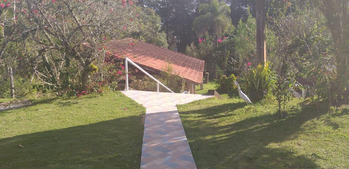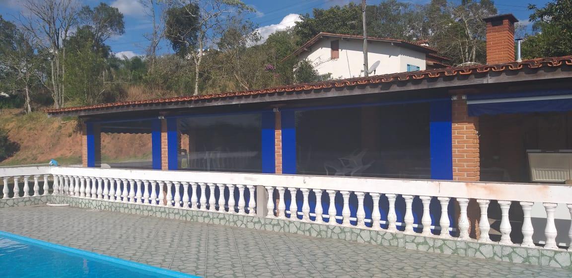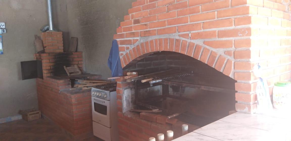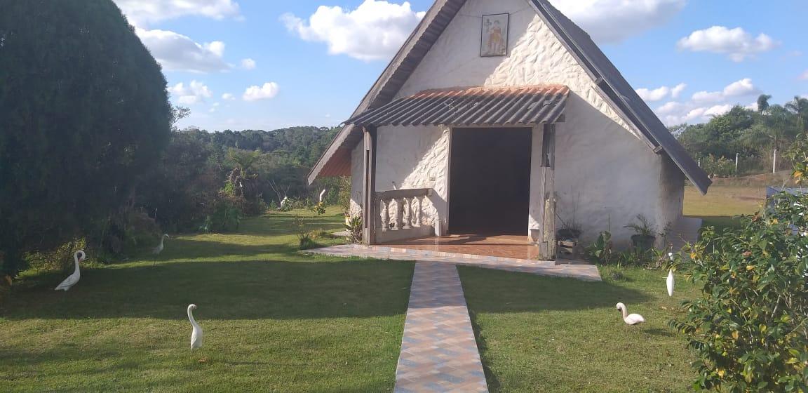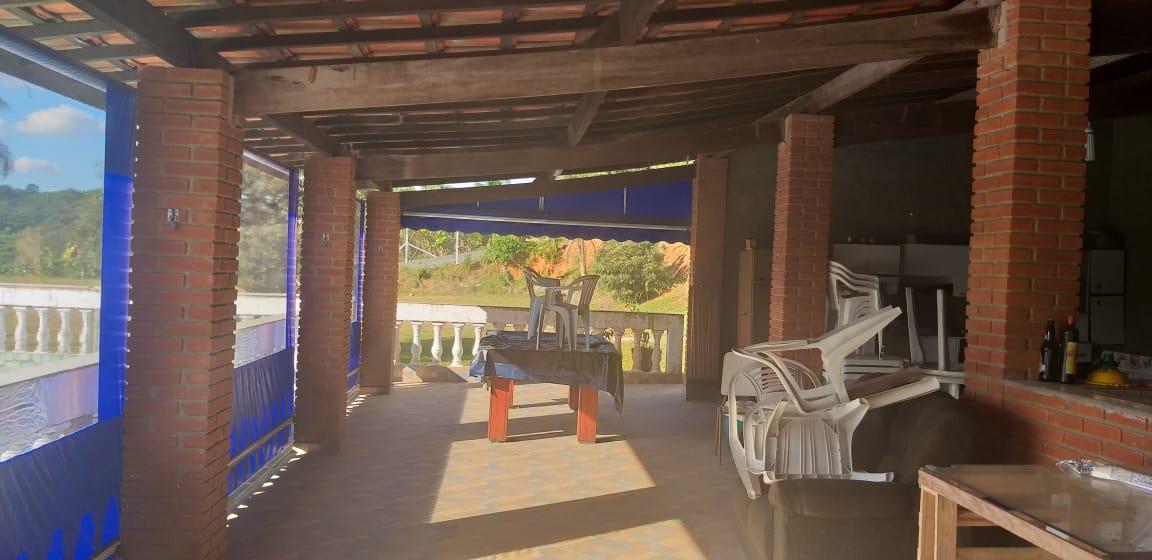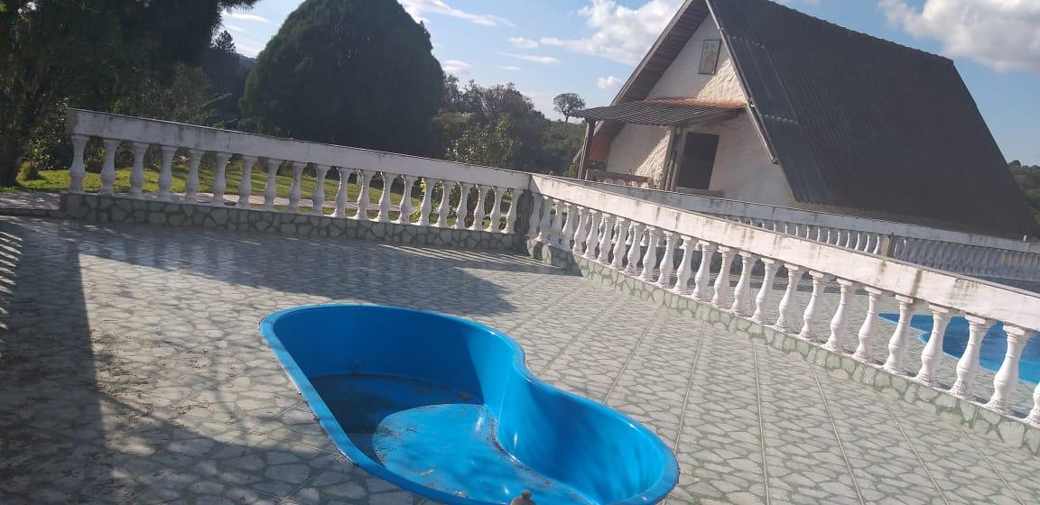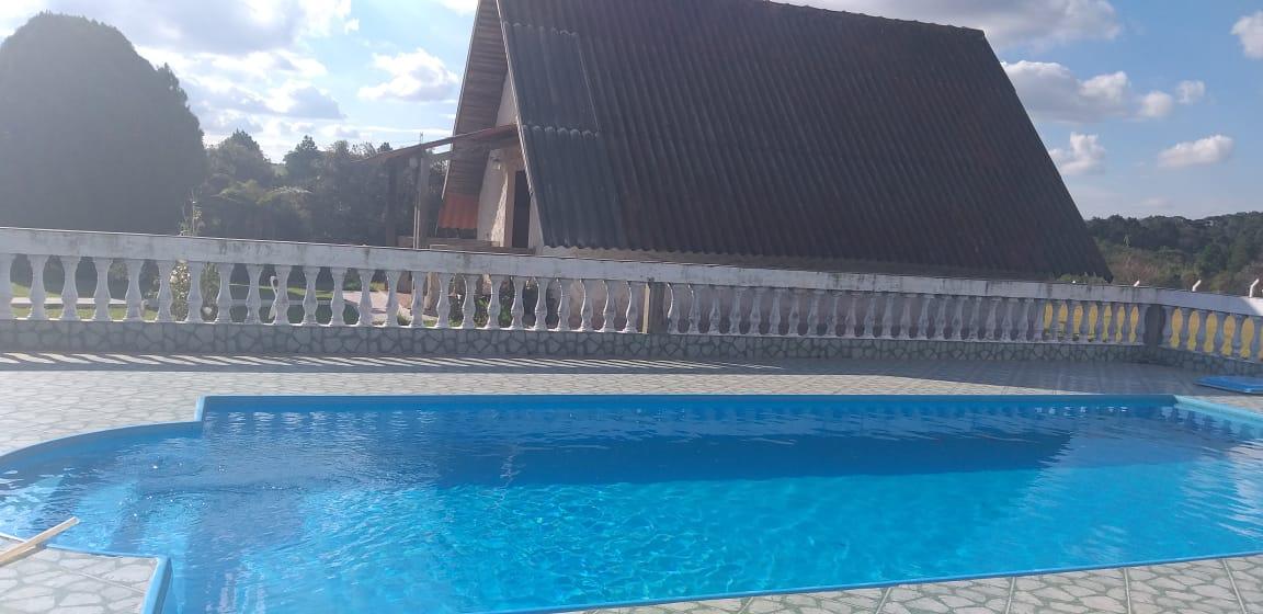 - Descrição: Chácara com 5000m² toda em alambrado. Casa com sala, cozinha, 4 quartos, sendo 1 com suíte, 1 banheiro social, varanda; Garagem coberta para 3 carros e descoberta para vários; Salão de jogos com churrasqueira, piscina 4x9 e uma para crianças; Capela 4x8 tipo chalé e pomar. Aceita Permuta por imóvel de valor menor. Toda documentada. Fica à 5 km do asfalto.