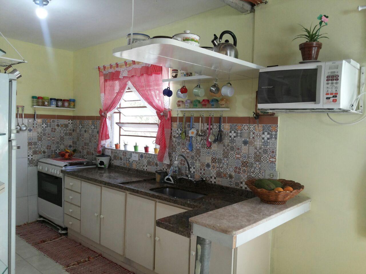 - Descrição: Excelente chácara com 1400 m² com casa em processo de melhorias. Tem 2 dormitórios; sala; cozinha; banheiro social; área de serviço; garagem para vários carros; futuro espaço gourmet; pomar com várias árvores frutíferas; jardim; horta e galinheiro.