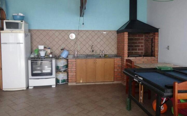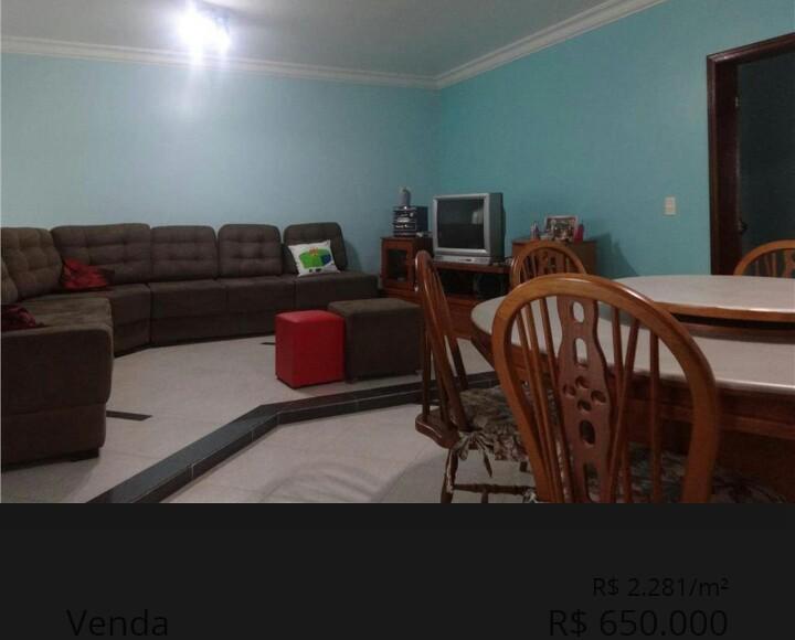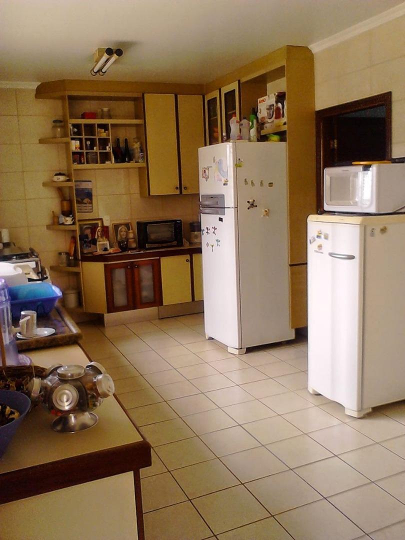 - Descrição: Ótimo sobrado com 300 m² de terreno e 285 m² de área construída. Possui 3 dormitórios, sendo 1 suite, sala de tv com sacada, sala de visitas, sala de estar, cozinha grande, lavanderia, quarto e banheiro de empregada, espaço gourmet, salão fechado nos fundos, pequeno canil, garagem para 4 carros, quintal. Aceita permuta por imóvel de menor valor e casa no litoral de menor valor.